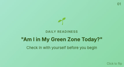 The 5-Minute Safety Check Digital Card Deck starts with this exact question: Am I in my green zone today?